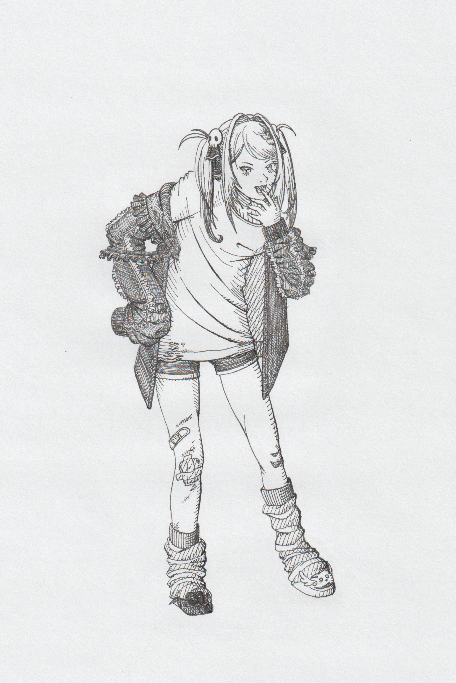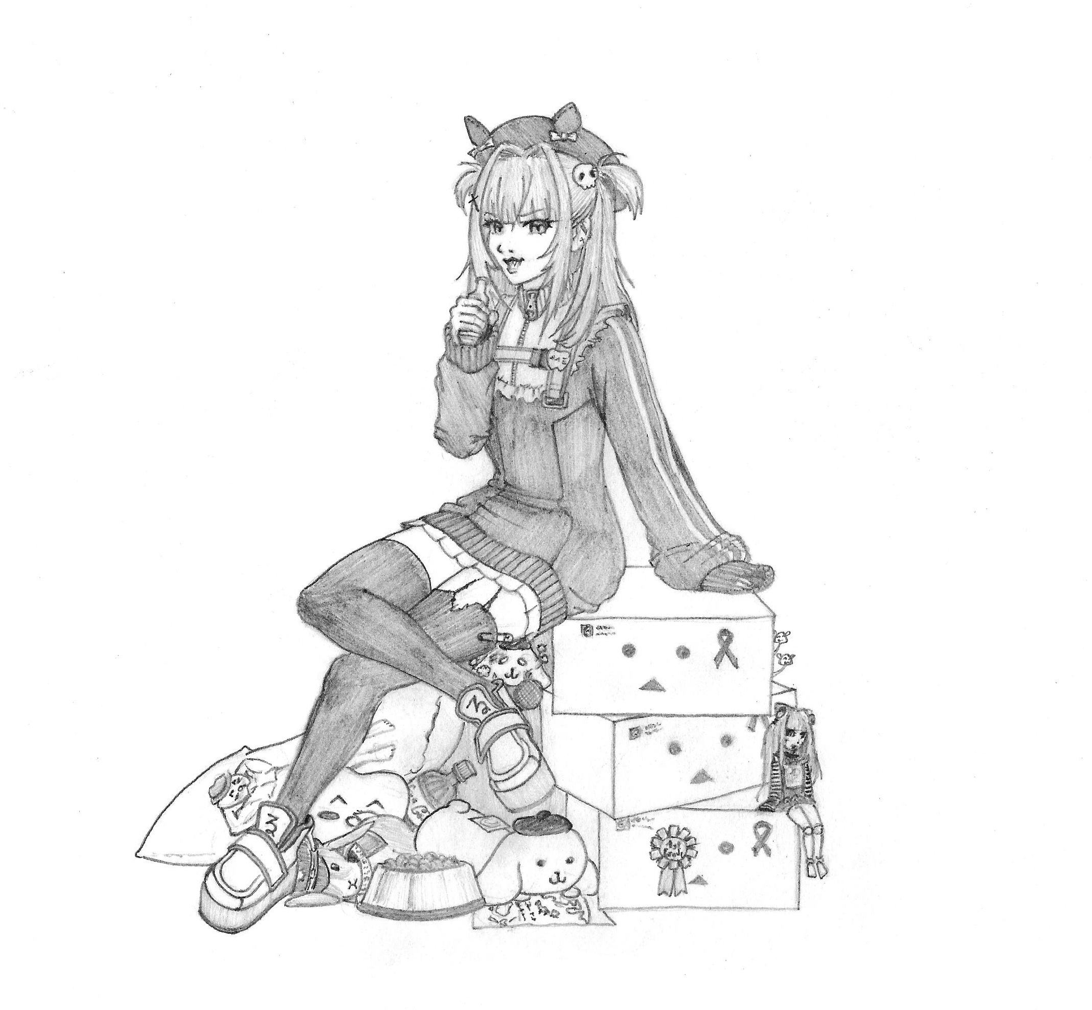 Rurumi was very cute during "our" 3D date last year. I wanted to try and capture her energetic cheerfulness during that stream, draw her amazing outfit, and try out cross-hatching. The leg is a mess, sadly.