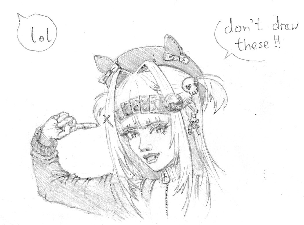 Doodled during a drawing stream by Rurumi Yumemi. I mentioned this in the chat. She was wearing this wreath of condoms in her hair, as she sometimes does, and asked me not to draw them, so...