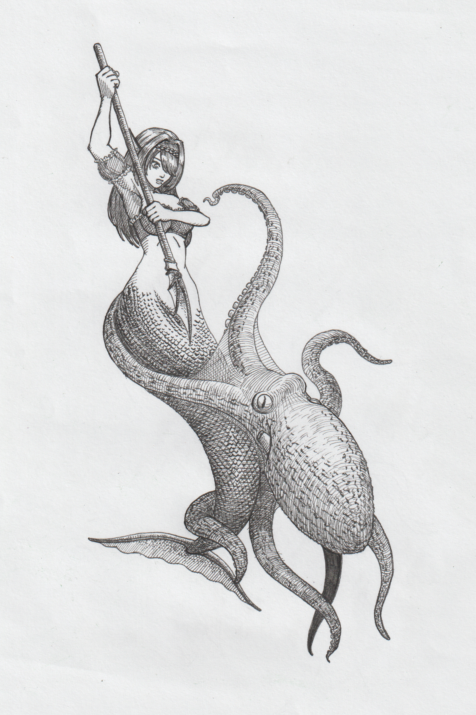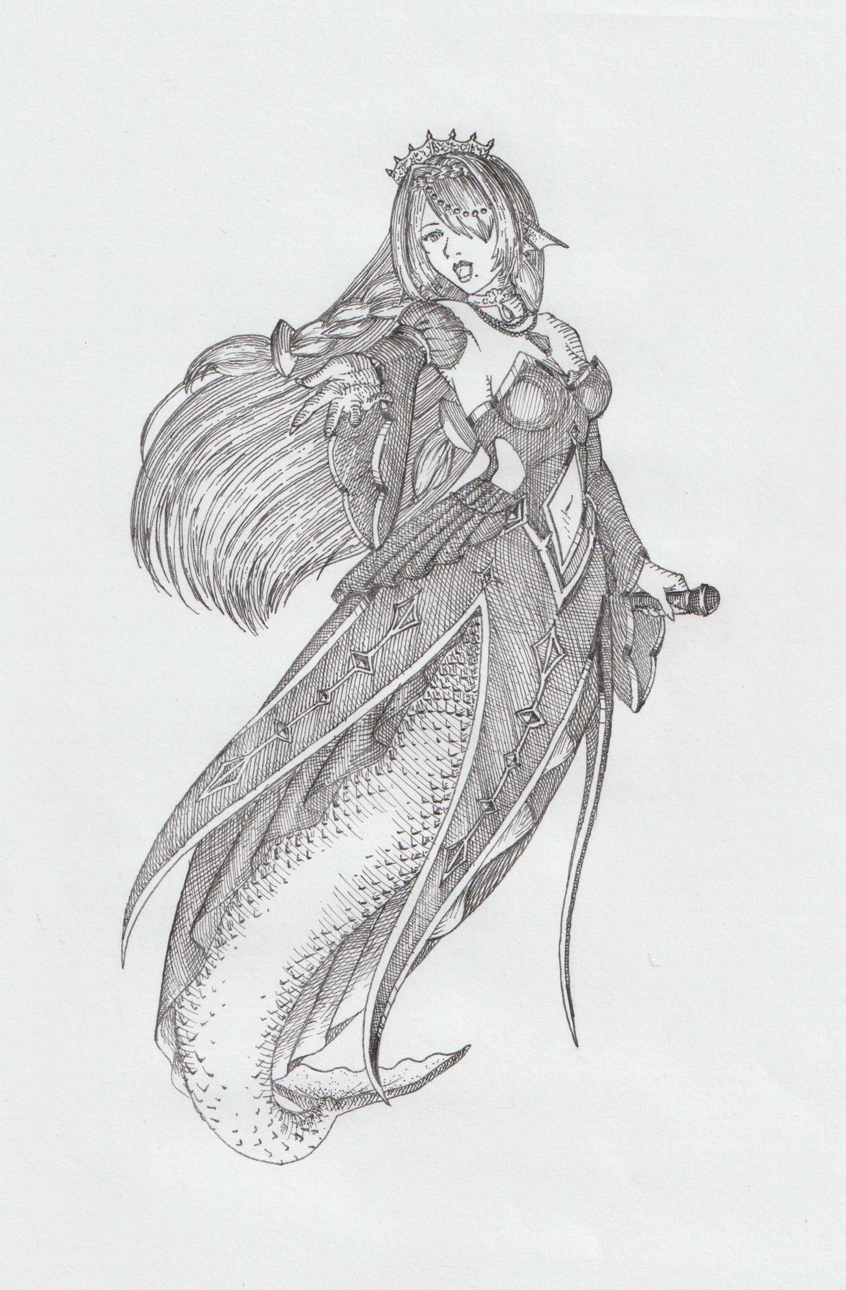 A friend taught me that it is better to separate light and dark in a composition, so I wanted to try it. In my first sketch Serena-sama held a trident, but I replaced it with a spear designed by the gifted Ianeira.
