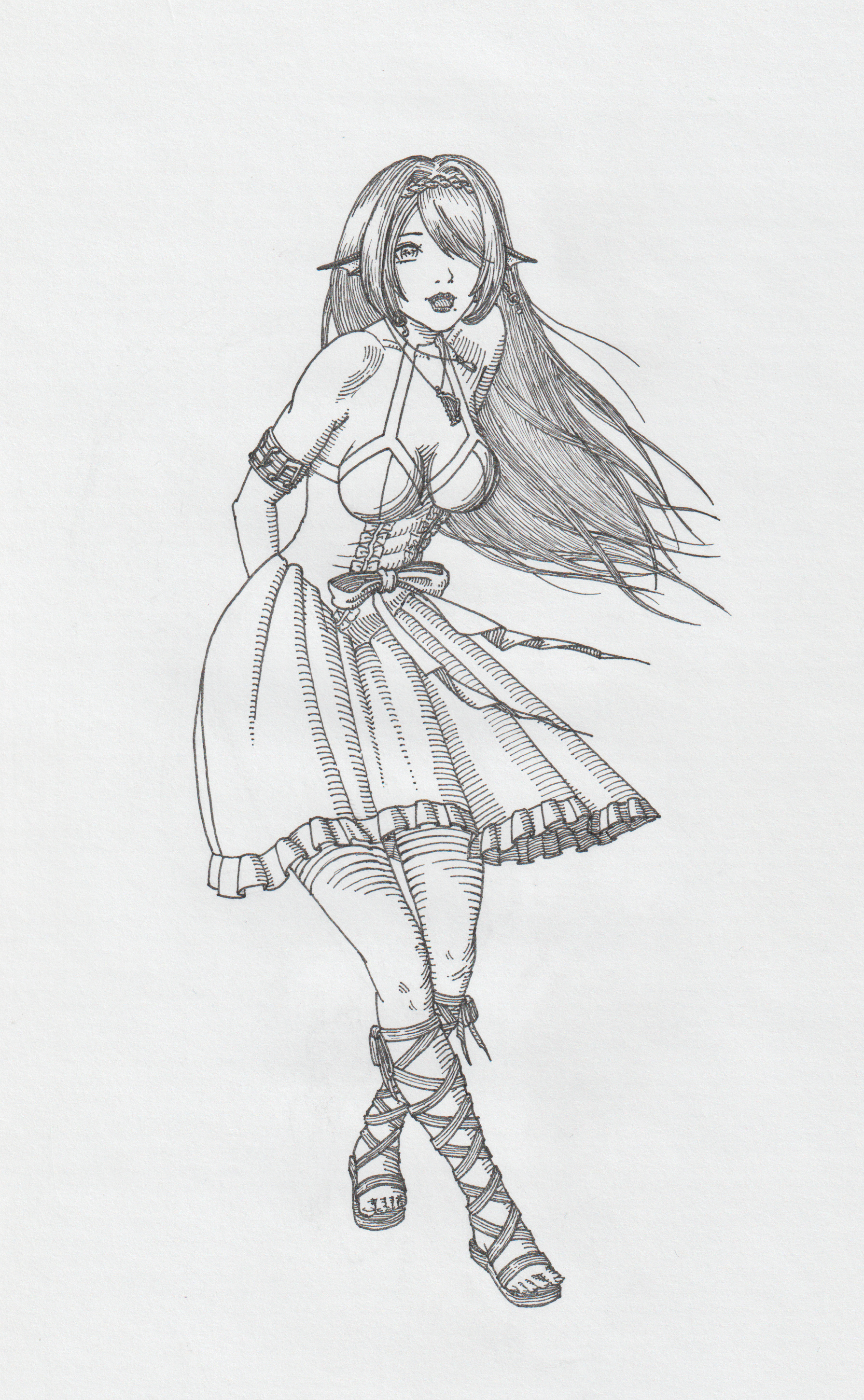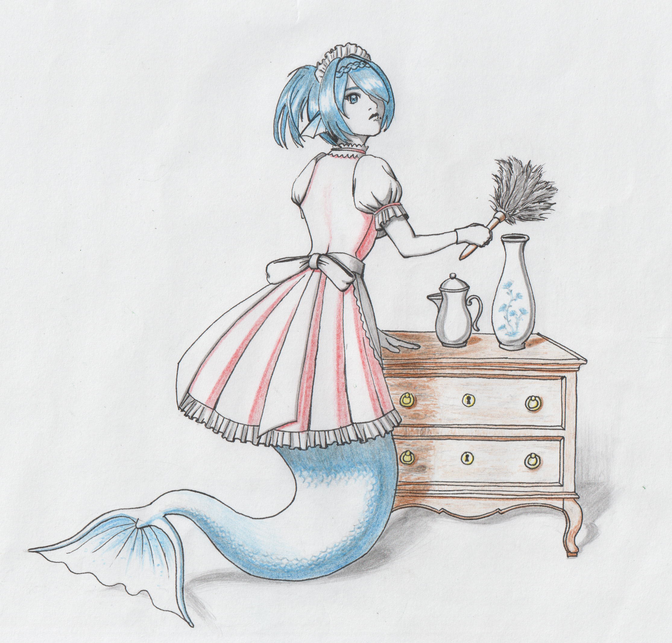 I got inspired by Serena's 3D maid costume. This is the first time I've inked and coloured a picture.